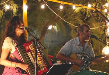 Tassos & Evelise apportent la chaleur des tavernes grecques à chaque concert, mêlant bouzouki et accordéon pour faire vibrer les cœurs.